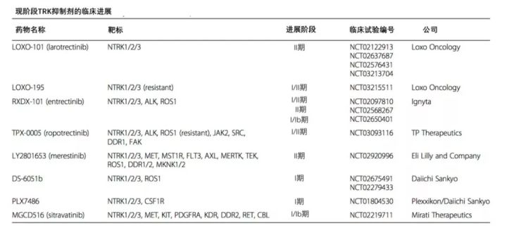 此外,关于拉罗替尼的耐药性研究也已提上日程,Loxo另一个产品就是肿瘤出现对拉罗替尼耐药后的下一代NTRK抑制剂。关于NTRK,制药巨头罗氏也有一个类似拉罗替尼的药在临床试验中,目前得到的数据与拉罗替尼非常接近,预计离上市也不远。
