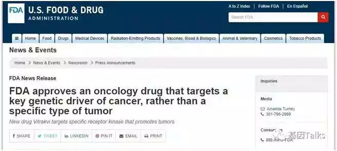 2018年11月26日,FDA加速批准泛癌种靶向药拉罗替尼(Larotrectinib,LOXO-101)上市!